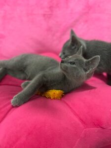 Te piękne, szlachetne koty zachwycają swoją elegancją, błękitnym futerkiem i łagodnym charakterem. Są niezwykle towarzyskie, przywiązują się do opiekunów i szybko stają się pełnoprawnymi członkami rodziny. Jeśli szukasz kota, który wniesie do Twojego domu spokój, a jednocześnie mnóstwo czułości i zabawy, to właśnie te maluchy są stworzone dla Ciebie! Zachęcamy do kontaktu i poznania ich bliżej.