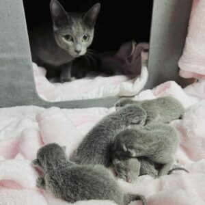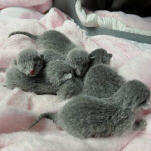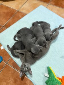 7 lipca 2022 roku w naszej hodowli przyszedł na świat nasz pierwszy miot kociąt rasy Rosyjski Niebieski – dwie urocze dziewczynki i trzech wspaniałych chłopców:
