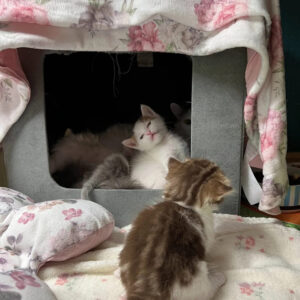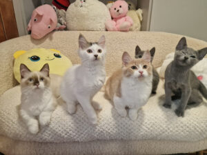 Wszystkie kocięta z tego wyjątkowego miotu trafiły do kochających, odpowiedzialnych domów. Z radością obserwujemy, jak dorastają i zamieniają się z małych, nieporadnych maluszków w pełne wdzięku, młode koty.